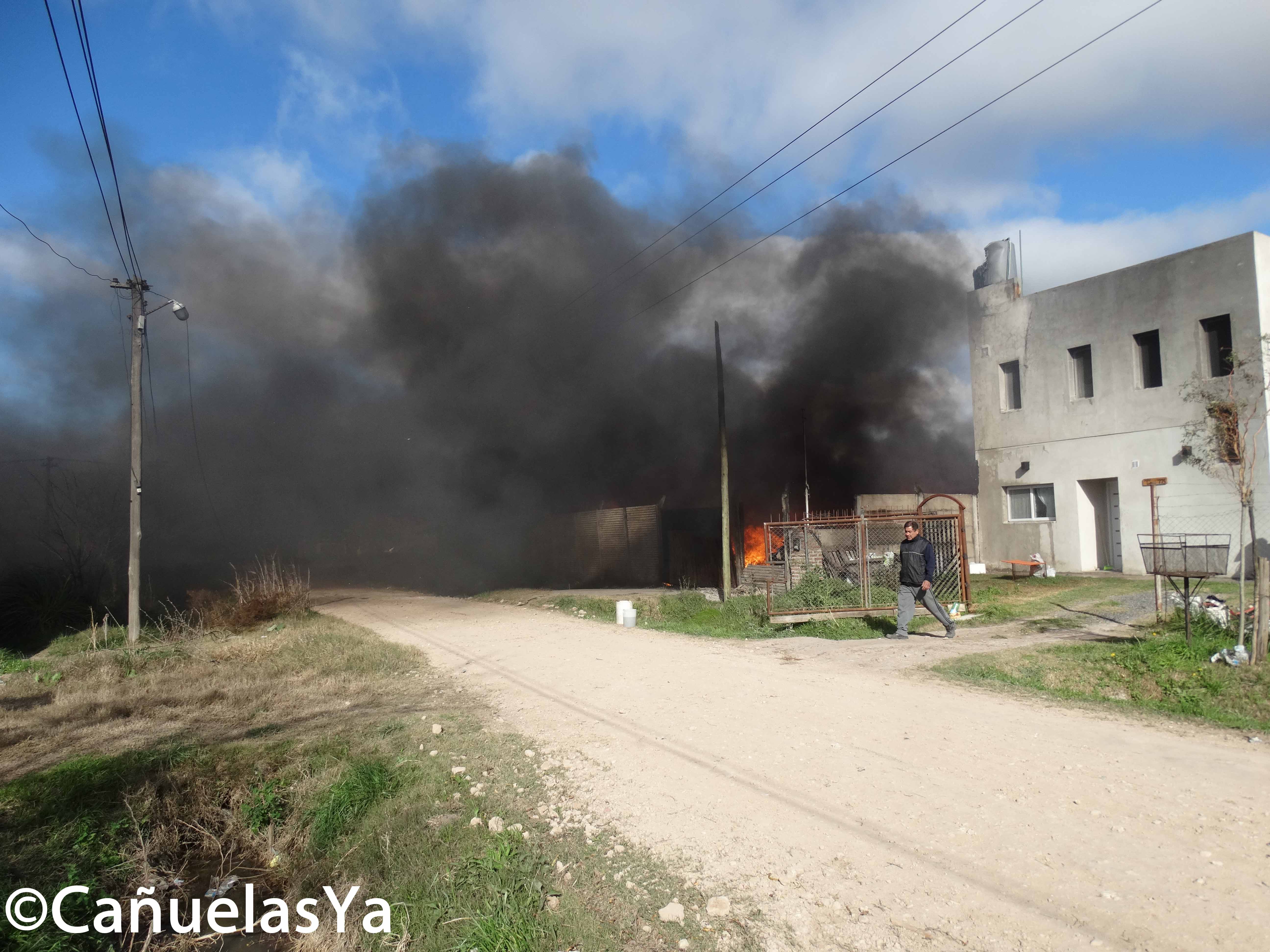 Un voraz incendio cuyas consecuencias materiales aún se desconocen, afectó esta tarde a un depósito de material reciclable -fundamentalmente plásticos, pvc y otros polímeros- ubicado en la calle Sargento Lemos y el Arroyo Cañuelas, a pocos metros de Pellegrini a la altura del predio de Las Cañas.