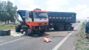 Según informó la Policía Vial, todos los autos circulaban en el mismo sentido (Cañuelas – Ezeiza). El accidente se produjo alrededor de las 11, cuando un camión IVECO patente ENR608 con semirremolque vacío chocó por detrás a una camioneta Nissan Frontier (patente FEI533). El camión era conducido por Omar Lovaiza, de 47 años, en tanto que la camioneta era guiada por Rosendo Miller, de 75 años, quien viajaba acompañado de hija María, de 26.