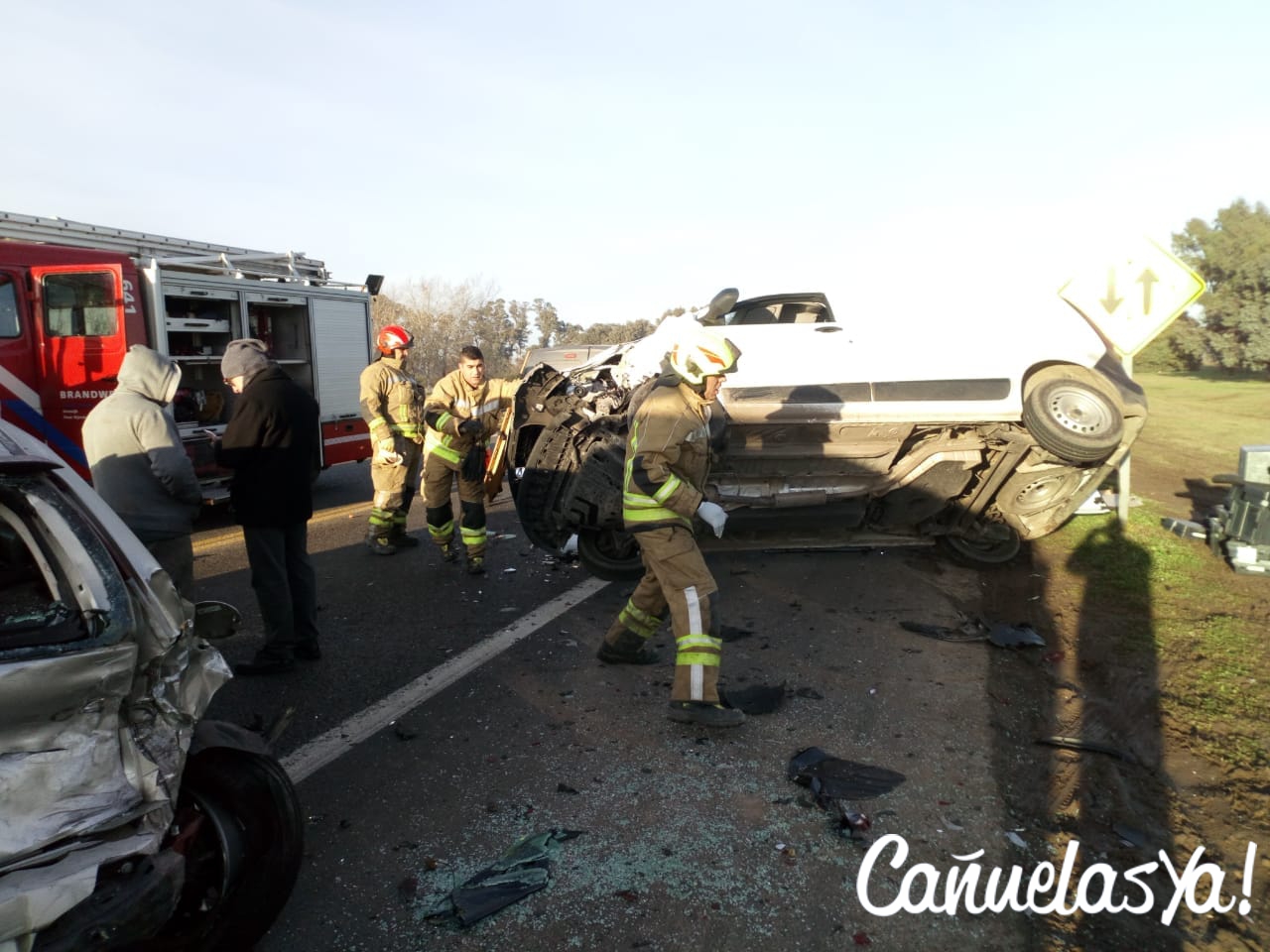Tras la triple colisión, la primer Kangoo volcó, por lo que su conductor –Juárez- resultó con politraumatismos, y fue derivado al Hospital Marzetti.
