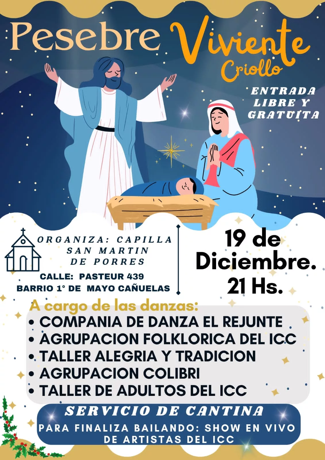 En la antesala de la Navidad, Cañuelas se prepara para vivir una noche especial cargada de emoción, tradición y espíritu comunitario. Este viernes 19 de diciembre, a partir de las 21 horas, se realizará el Gran Pesebre Viviente organizado por la Capilla San Martín de Porres, en su sede ubicada en Pasteur 439, en el barrio Primero de Mayo, con entrada libre y gratuita.